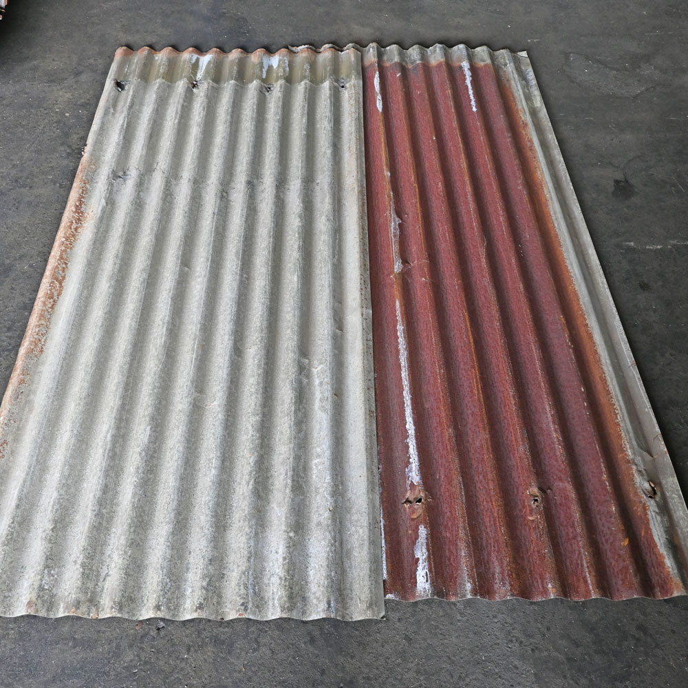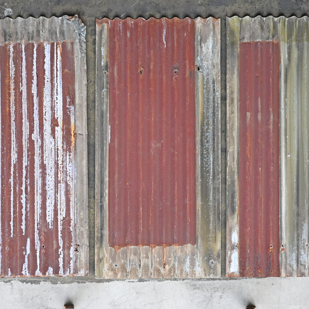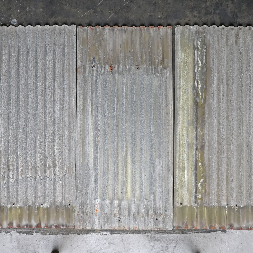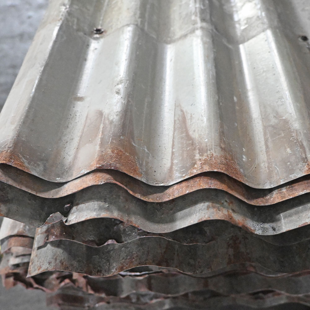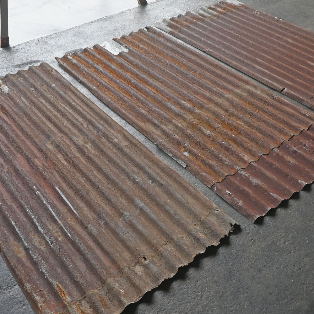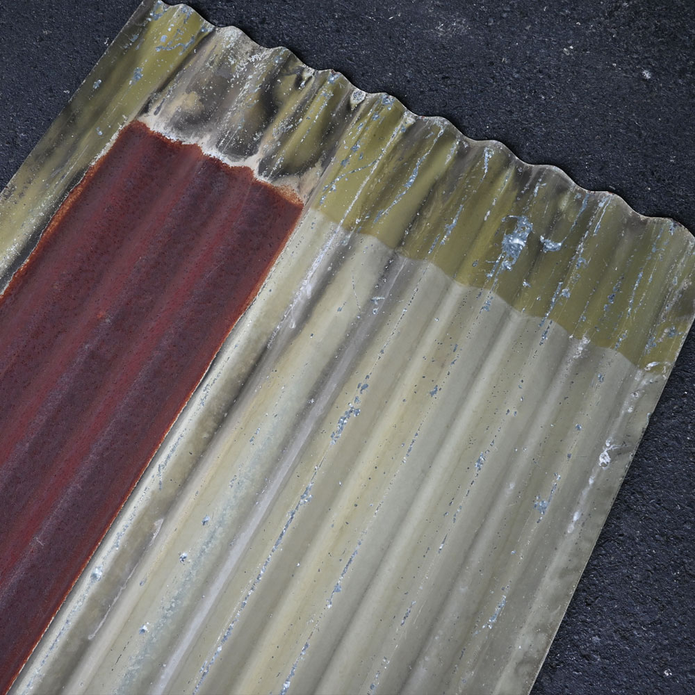 | 素材 | トタン | カラー | グリーン | 重量 | 約 7.0kg前後/枚 | 使用場所 | 内外装、什器等 | 製造国 | インドネシア |